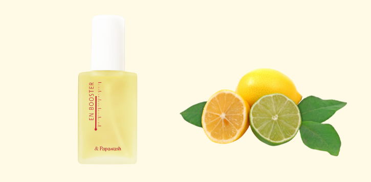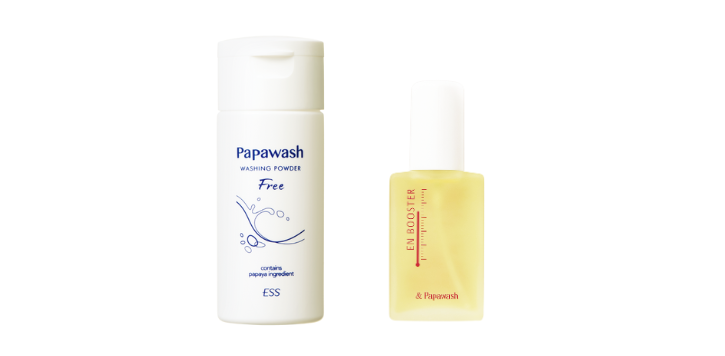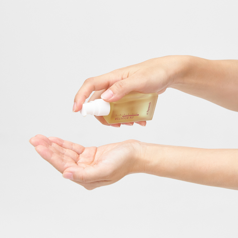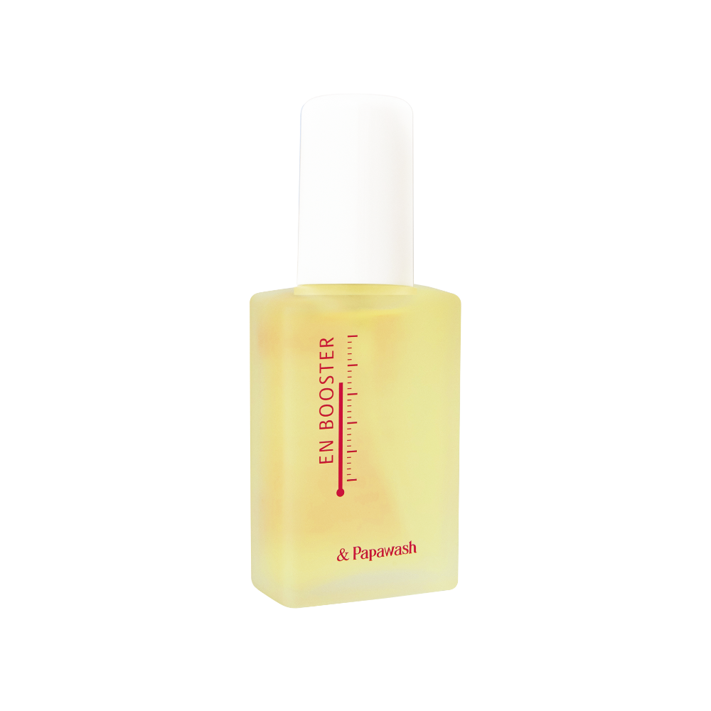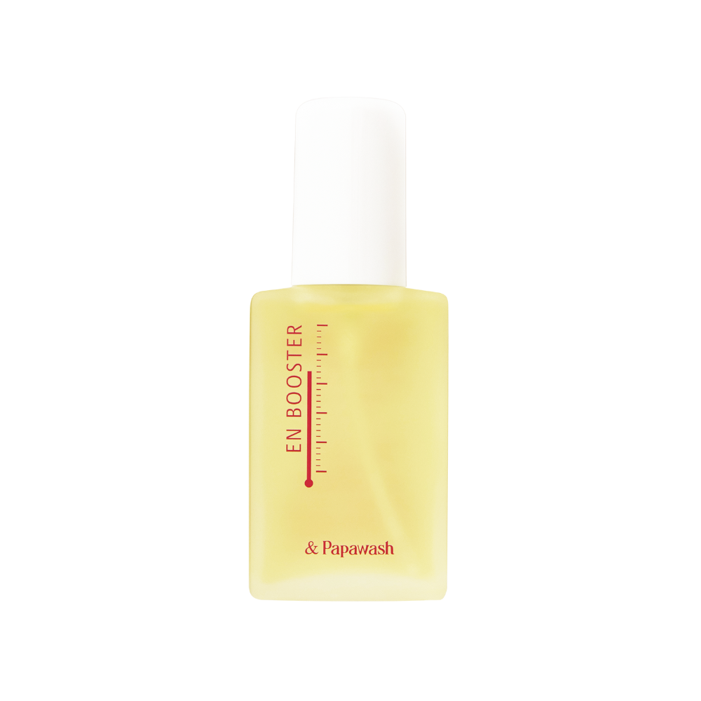 パパウォッシュで古い角質や毛穴詰まりを取り除いたら、まずはエンブースターを。温感効果で肌をじんわり温めるとともに角質水分量をキープし、肌本来の美しさを保つ酵素の働きをサポートします。
