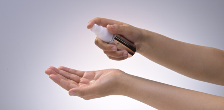化粧水の後、手のひらに1プッシュ分をとり、顔全体になじませます。