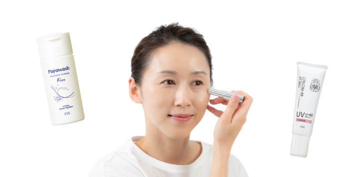 肌全体の透明感を高めるなら、気になる点の集中ケアと顔全体のスキンケアの合わせ使いがおすすめ。