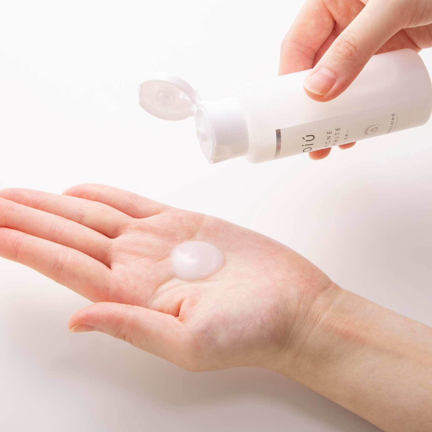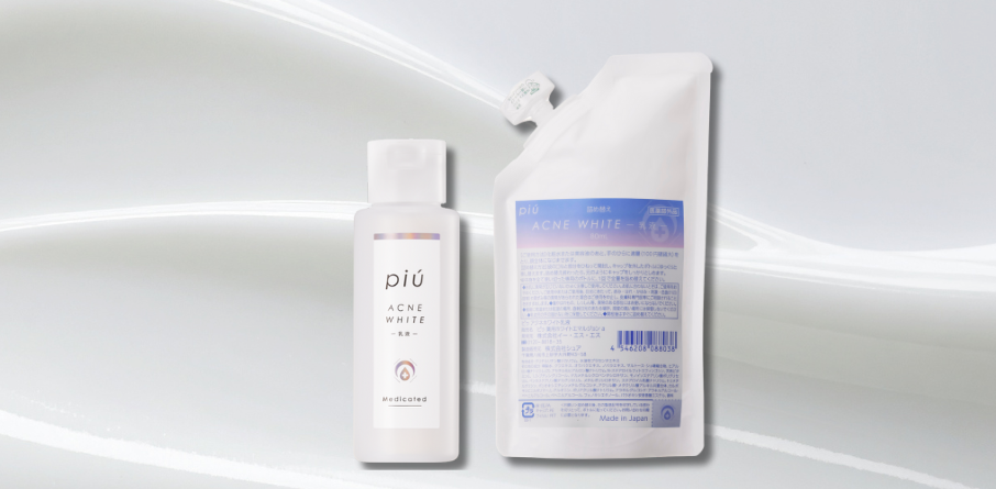 ピゥ アクネホワイト乳液は、ニキビ予防・美白有効成分*を配合した薬用化粧品。