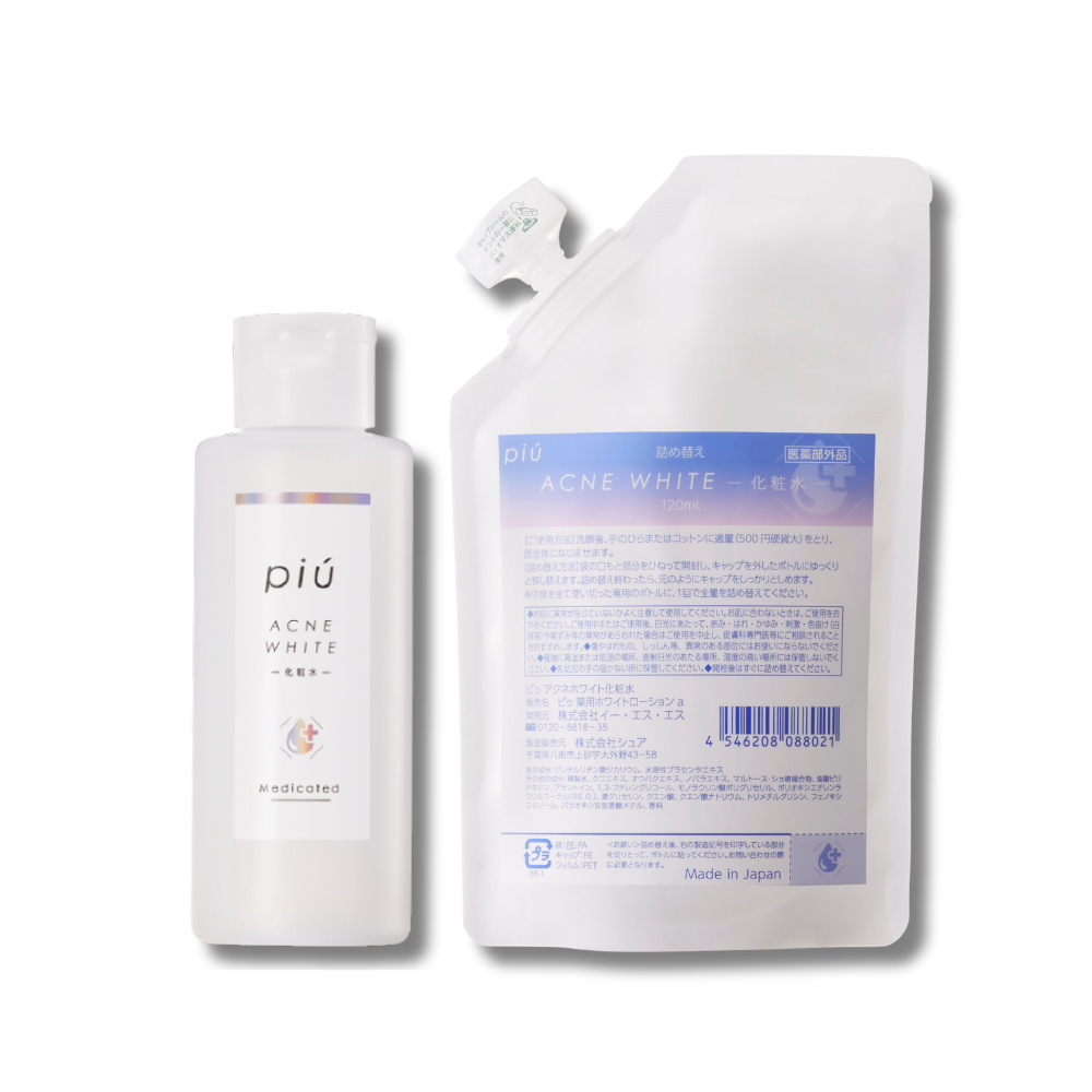 ピゥ アクネホワイト化粧水セット120mL【期間限定・専用ボトル付き】ニキビ予防と美白ケアの薬用化粧水